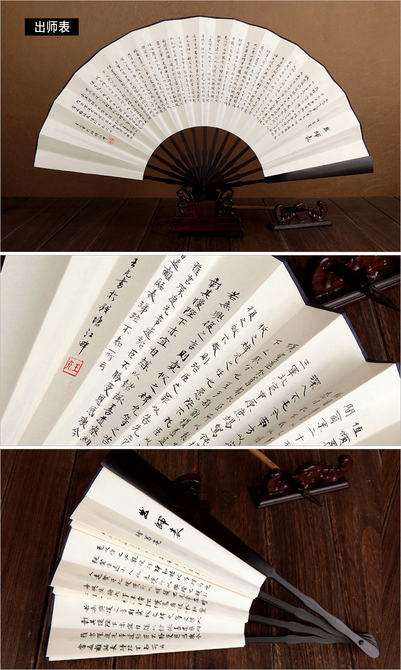 Abanico de papel blanco de caligrafía pintado a mano de ébano en la orden del pabellón del vino
