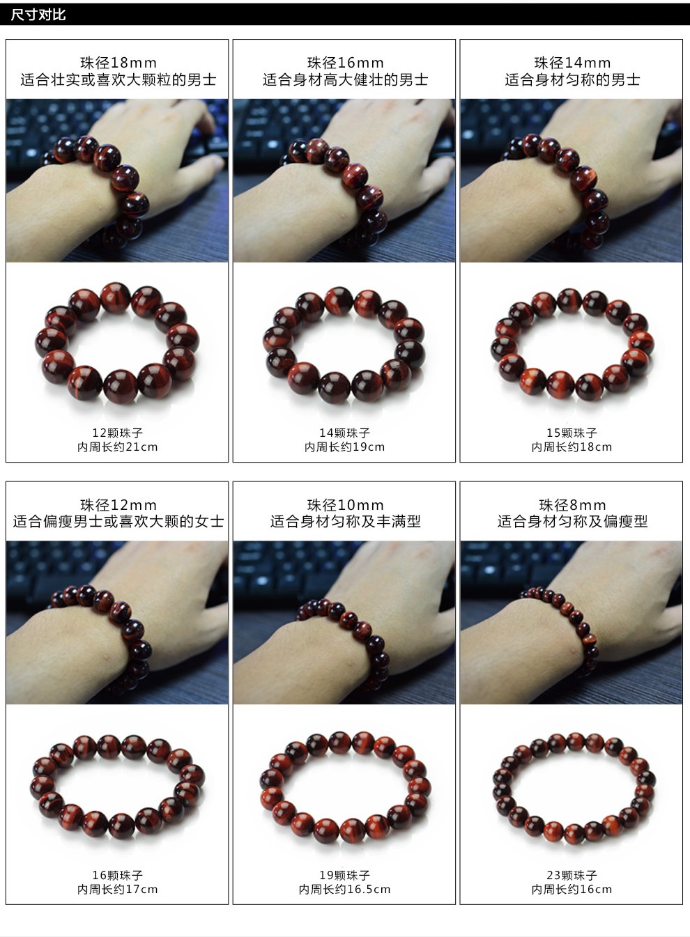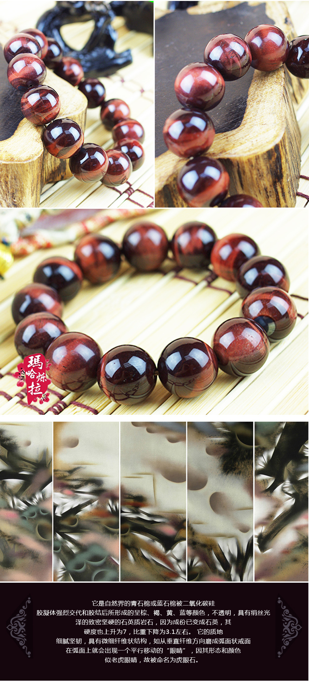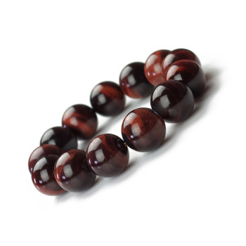 Bracelet de Perles d'Oeil de Tigre Naturel Rouge Foncé 14mm