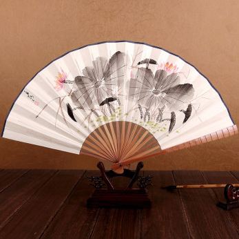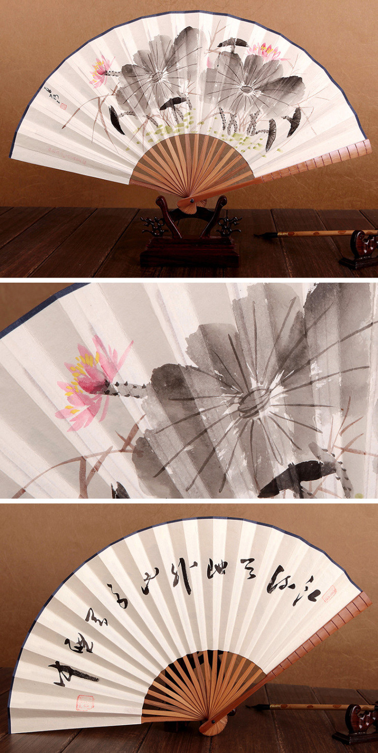 סינית נייר אמנות אורז Paer מתקפל יד מניפה 27 ס"מ