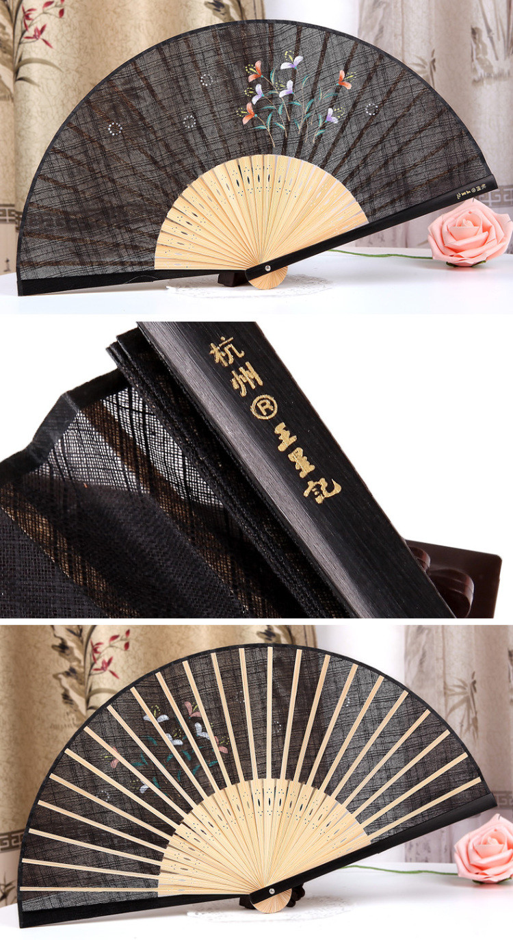 Kinesisk stil Cotton Hemp Fiber Hand Drawn folding fan 21,6 cm