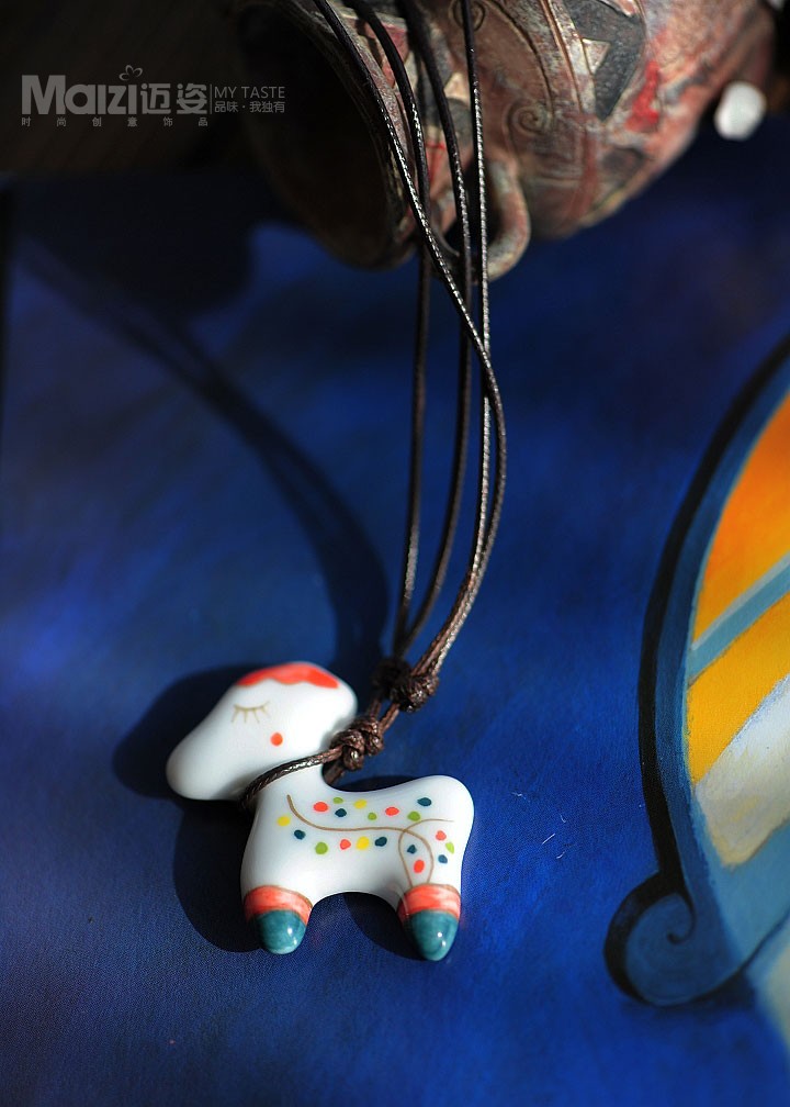 Super Cute Fawn Color Ceramic Handpainted Necklace