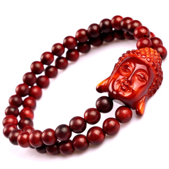Pulseira de contas de dupla camada Pterocarpus Santalinus Shakyamuni